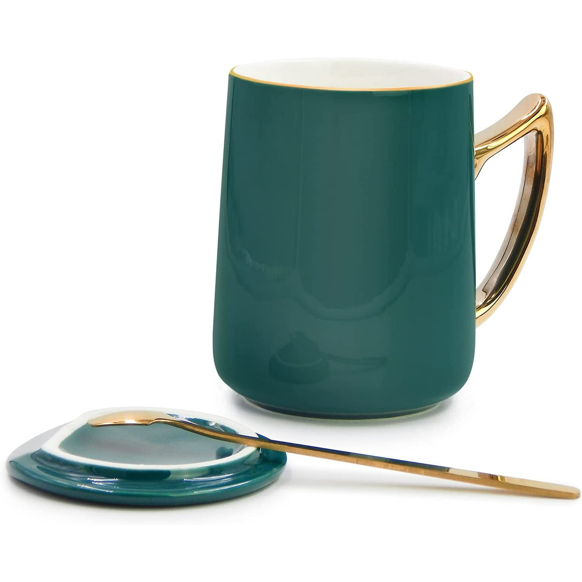 Tossow Matte Ceramic Coffee Mug With Spoon And Lid Top Gold Trim And Gold Handle Cup Dishwasher Safe 15 0z 450ml Blackish Green Walmart Canada